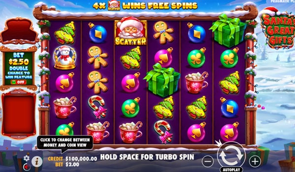 เพลิดเพลินไปกับเกมสล็อตใหม่ล่าสุด Santa’s Great Gifts เล่นง่าย ไม่ต้องสมัคร ปั่นสล็อตฟรีทุกเกมทุกค่าย เพื่อลุ้นรับรางวัลแจ็คพอตก้อนโต ที่ให้ความรู้สึกเหมือนเล่นตัวเกมจริงๆ กับการทดลองเล่นสล็อตฟรี ด้วยระบบที่ดีที่สุด ไม่มีเด้งไม่สะดุด สัมผัสความสนุกสุดมันส์ได้แล้วที่นี่